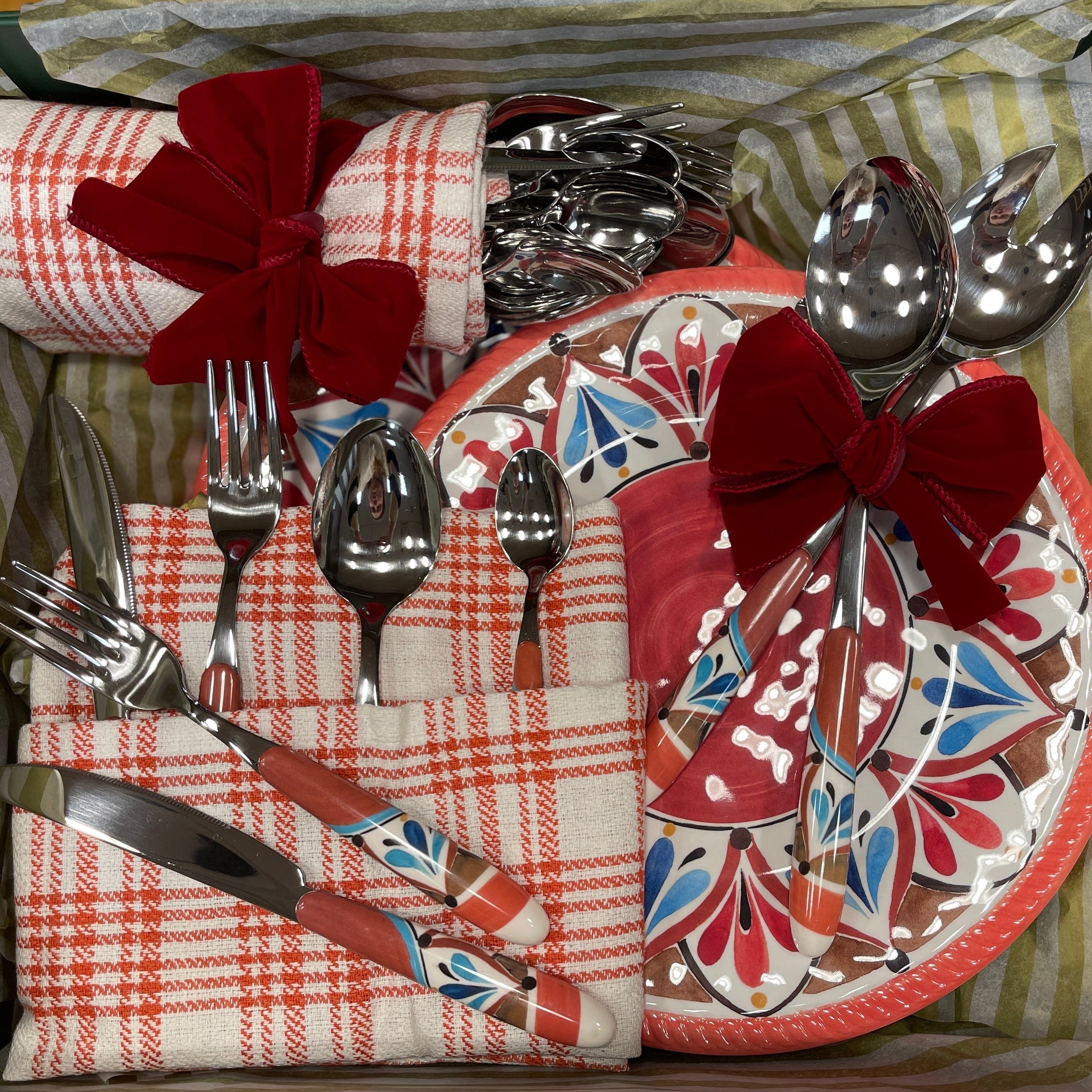 Every bundle pairs our most-loved melamine with coordinated serving pieces and accessories — thoughtfully styled, beautifully packaged, and no two exactly alike.