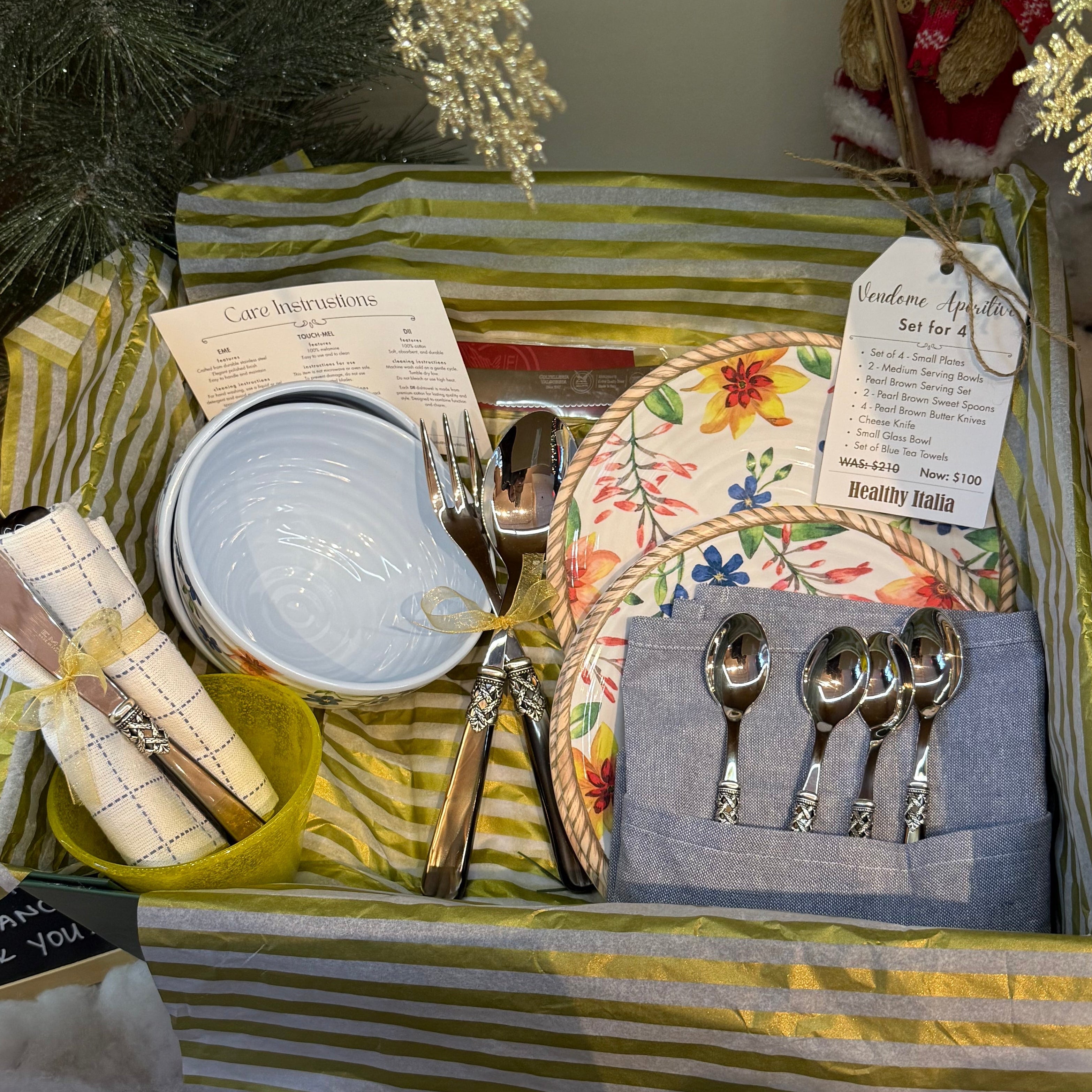 Every bundle pairs our most-loved melamine with coordinated serving pieces and accessories — thoughtfully styled, beautifully packaged, and no two exactly alike.