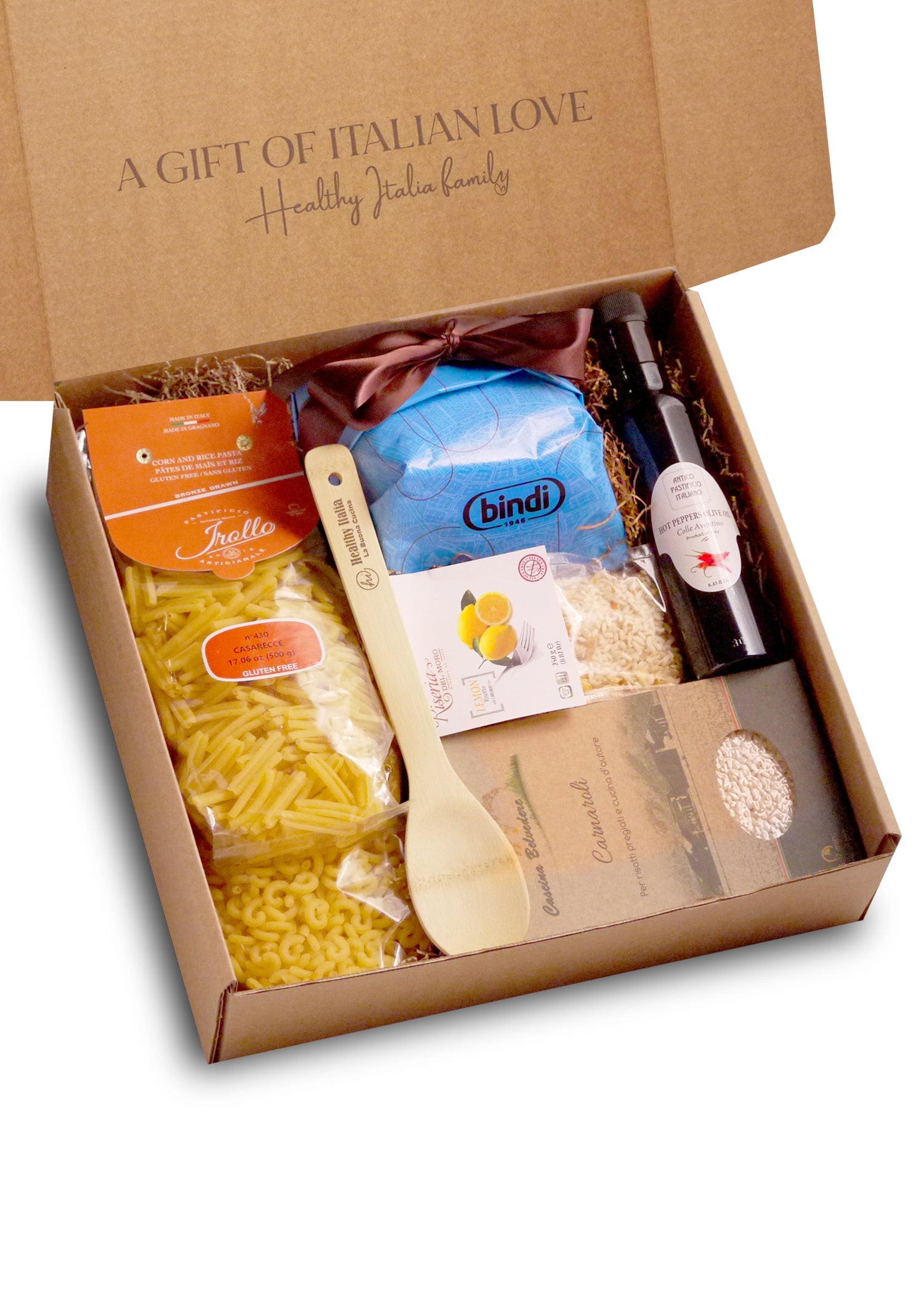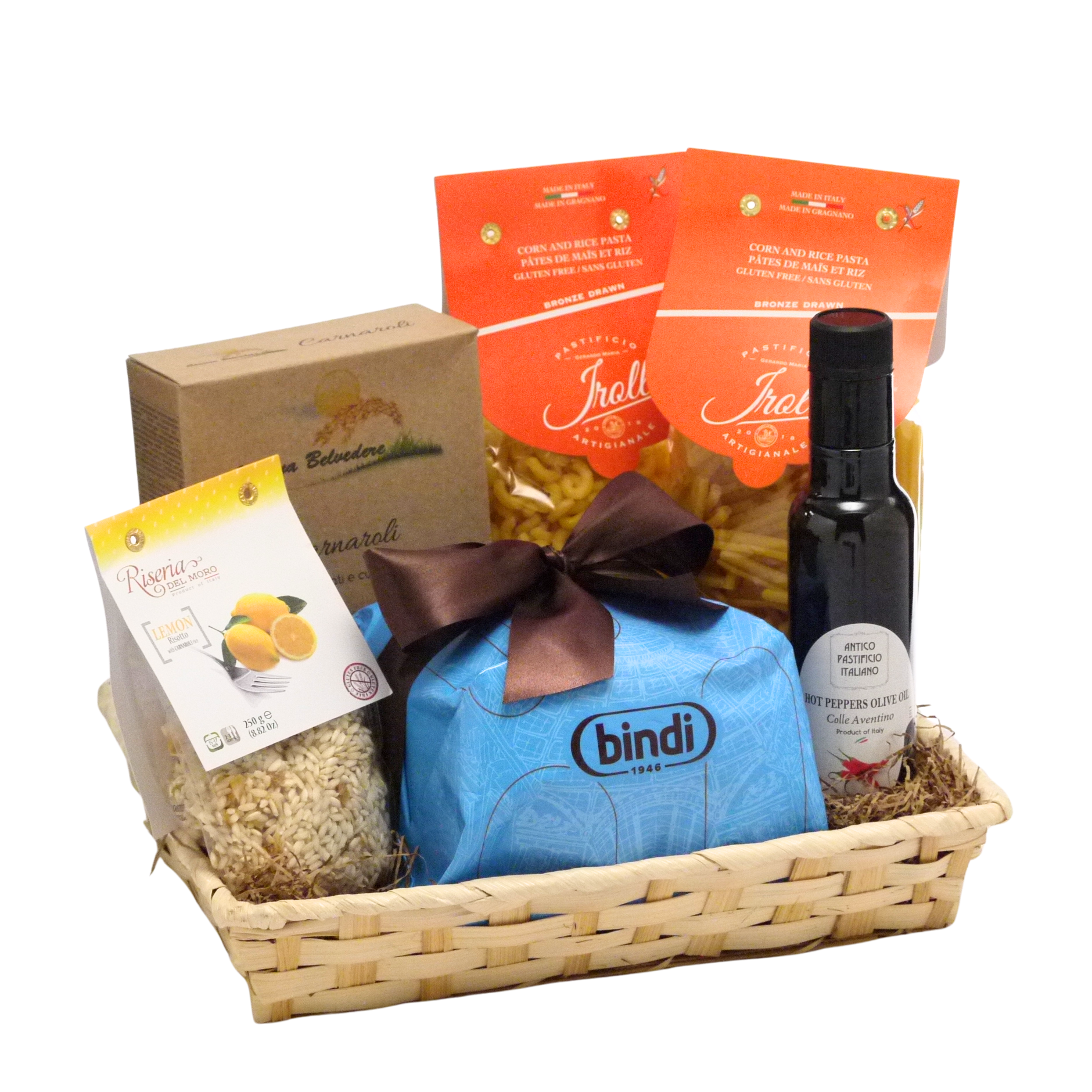 Take the challenge out of cooking gluten free! Featuring four of our popular gluten free options, this basket makes eating pasta and risotto fun and simple. Don't forget to drizzle some of our unique extra virgin olive oil on top of your dish that adds rich notes to perfect any meal.